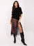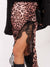 Efektowna spódnica midi o satynowym wykończeniu, która łączy elegancję z wyrazistym charakterem. Model wyróżnia się zwierzęcym wzorem, zmysłowym rozcięciem oraz dekoracyjną koronką, dzięki czemu świetnie sprawdzi się zarówno na wieczór, randkę, jak i na stylizacje „smart casual”.