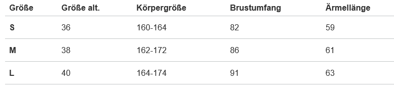 M: szerokość pod pachami - 43 cm, długość rękawa - 56 cm, długość całkowita - 53 cm.