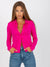 Dopasowująca się do sylwetki bluzka damska - krótka koszula damska - bluzka damska na guziki - bluzka damska w modnych kolorach fuksja, zieleń - styl basic