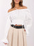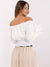 Weiße schulterfreie Bluse mit Spitze und Smoktaille – romantischer Boho-Stil