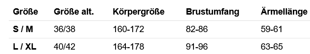 S/M: szerokość pod pachami - 57 cm, długość całkowita - 81 cm, długość rękawa - 62 cm