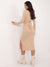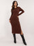 Figurbetontes langärmeliges Midikleid mit Schnürrung an der Taille