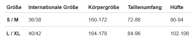 L/XL: Szerokość w pasie - 37 cm, Wysokość w pasie - 35 cm, Długość całkowita - 105 cm