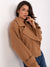 Krótki płaszcz damski z pagonami i dwurzędowym zapięciem