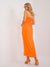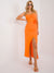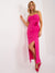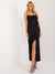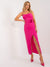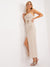 Cocktailkleid mit Schlitz Viskose - Abendkleid mit Schlitz und Blumenanstecker - Eventkleid lang mit Schlitz