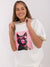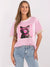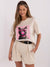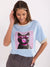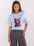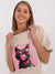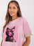 Oversize Damen T-Shirt mit Katzen-Print und glänzenden Details – Rundhals, Casual Style