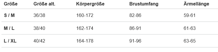 M/L: szerokość pod pachami - 48 cm, długość rękawa - 57 cm, długość całkowita - 46 cm