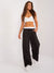 Hose mit feinen Streifen und doppelten Bund - High Waist Hose mit weißen Bund