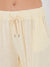 Model posiada elastyczną talię z regulowanym wiązaniem, dzięki czemu świetnie dopasowuje się do sylwetki i zapewnia maksymalną wygodę noszenia. Szerokie nogawki nadają stylizacji eleganckiego, swobodnego charakteru i optycznie wydłużają nogi.