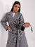 Langer Damenmantel mit Karomuster und Gürtel in Vintage -stil