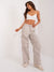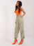 Lässige Cargohose mit Taschen und hohem Bund- Sommerhose Damen Cargostil