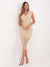 Efektowna sukienka koktajlowa o dopasowanym fasonie, zaprojektowana z myślą o eleganckich i wyjątkowych okazjach. Model bez rękawów z kobiecym dekoltem pięknie podkreśla sylwetkę, a delikatnie połyskująca struktura materiału nadaje całości luksusowego charakteru. Subtelne marszczenia w okolicy talii optycznie modelują figurę i wysmuklają linię ciała.