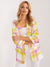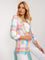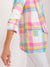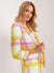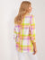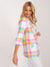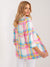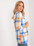 Mehrfarbig karierter Longblazer mit 3/4 Ärmeln - Bunter Blazer mit geriffelten Ärmeln