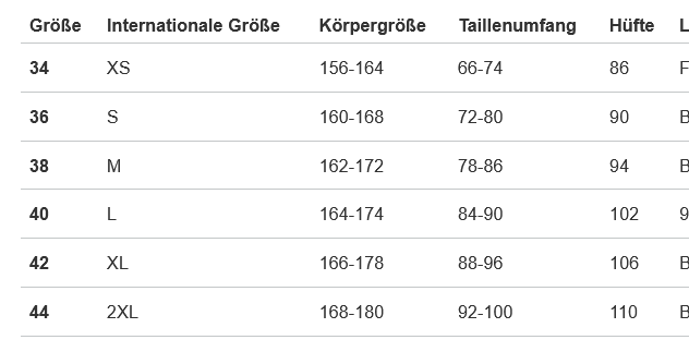 XL: Width waist - 40 cm, waist height - 33 cm, total length - 99 cm