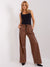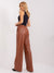 Women's faux leather trousers with wide legs