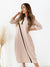 Long women's dress with hood and long sleeves. The dress can also be referred to as a long sweater or long hoodie. Modern design and cut make it an eye-catcher. It can be worn well in everyday life such as leisure and work. Available in three colors such as black, beige and brown.