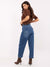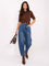 Ciemnoniebieskie jeansy baloon z paskiem – wysoki stan, luźna nogawka, modne spodnie damskie