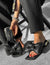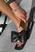 Damen Sandalen Schwarz aus Echtleder mit großer Schleife – Flache Slipper