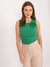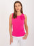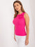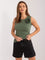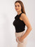 Dieses ärmellose Damen Shirt in Basic Stil verfügt über geripptes Material und einen Blumenstecker.